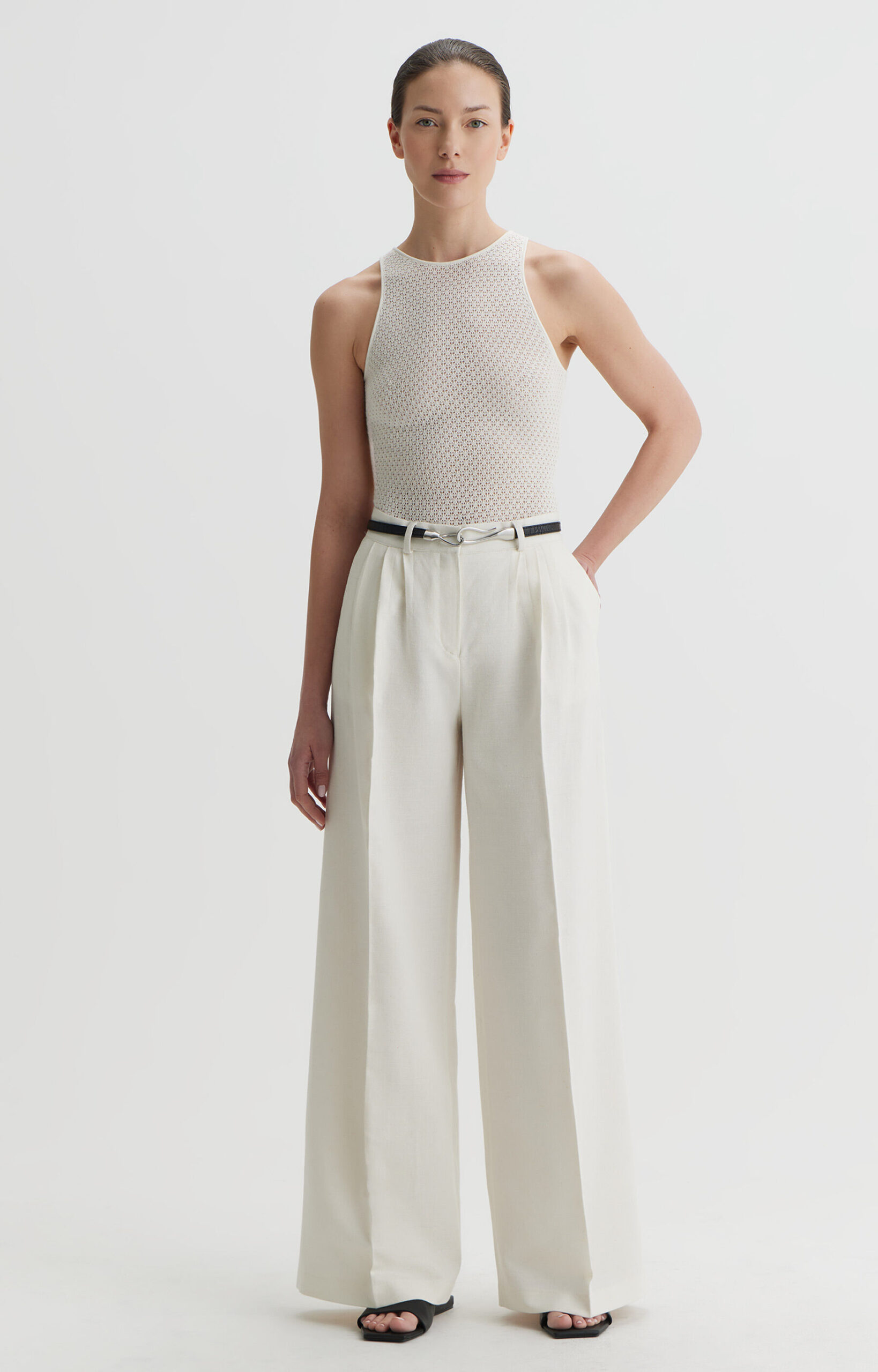 białe szerokie spodnie